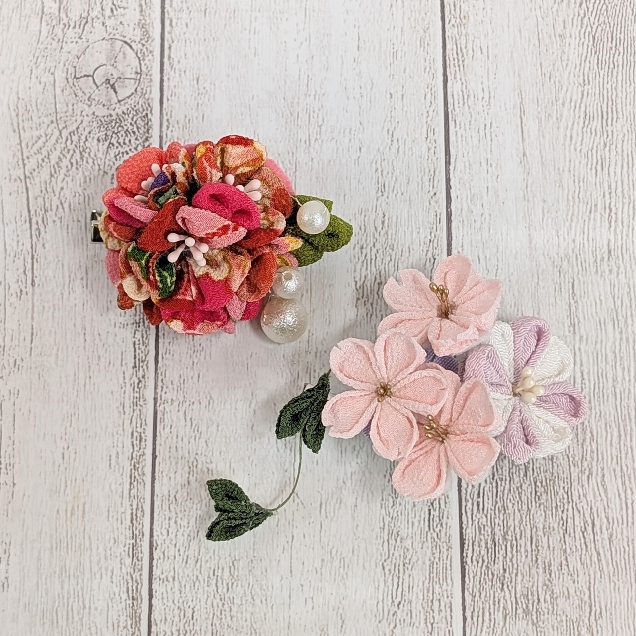 羽子板本体についているつまみ細工の飾りは取り外しが可能で、七五三のお祝いはもちろん、ちょっとしたおめかしの機会に髪飾りとしてもご使用いただけます。