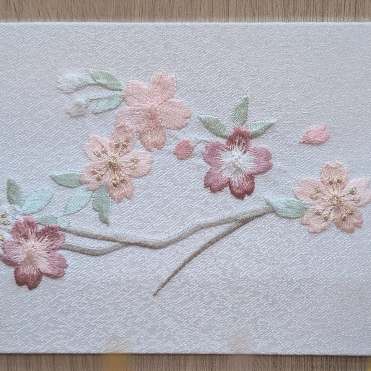 ケース背景には桜の絵柄を刺繍であしらった、春らしい仕立ても魅力です。