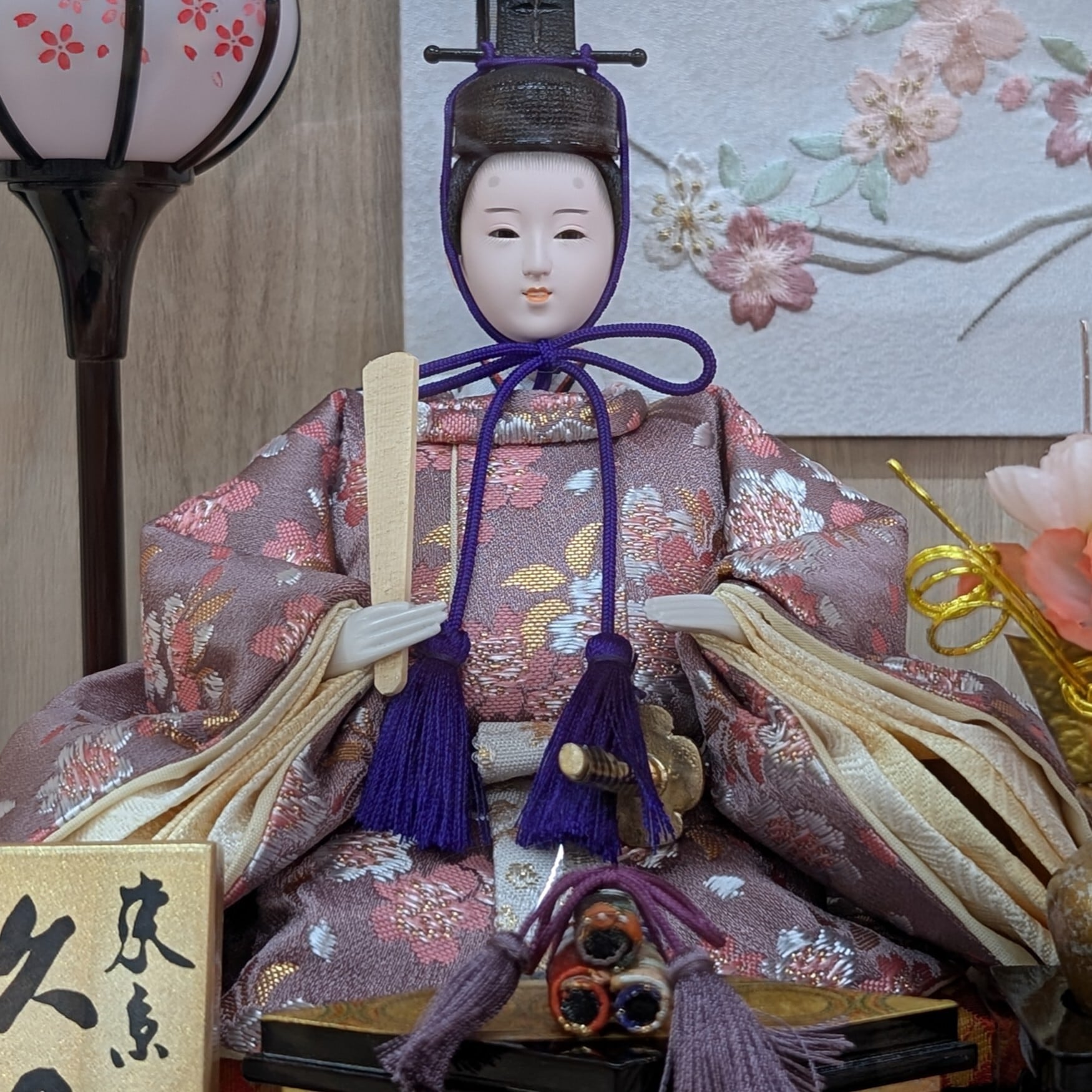 高級感のあるの黒塗のケースに、薄紫ぼかしの鮮やかな色合いが素敵なお人形が見事にマッチします。