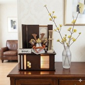 銅色の上品な色合い兜を用いた兜収納箱飾りです。