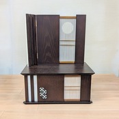 ■飾り台になる収納箱は吉祥文様の「七宝」、千筋細工部分はLEDライト(コード式)で灯りが灯ります。