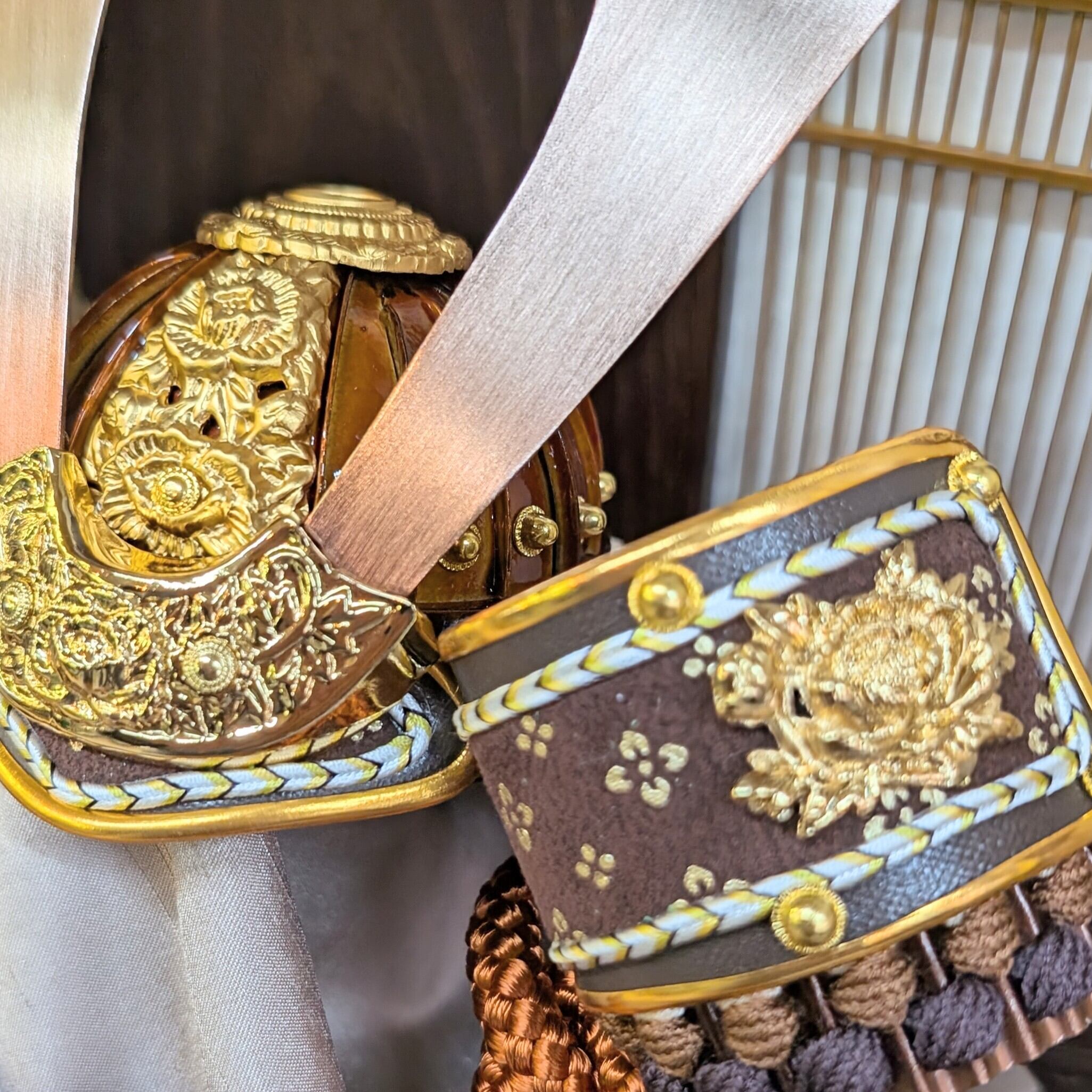 ■全体のブラウンの雰囲気にあわせ銅色の鍬形を用いています。