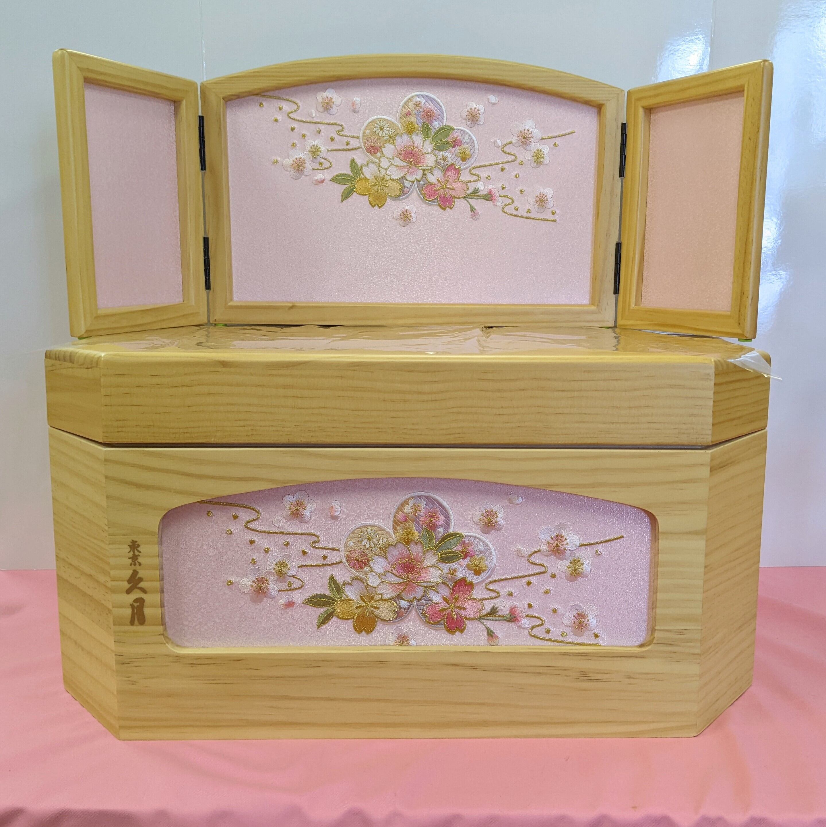 丸みを帯びた、愛らしいお顔が人気の、木目込み人形「ほのか」シリーズの、収納親王飾りです。