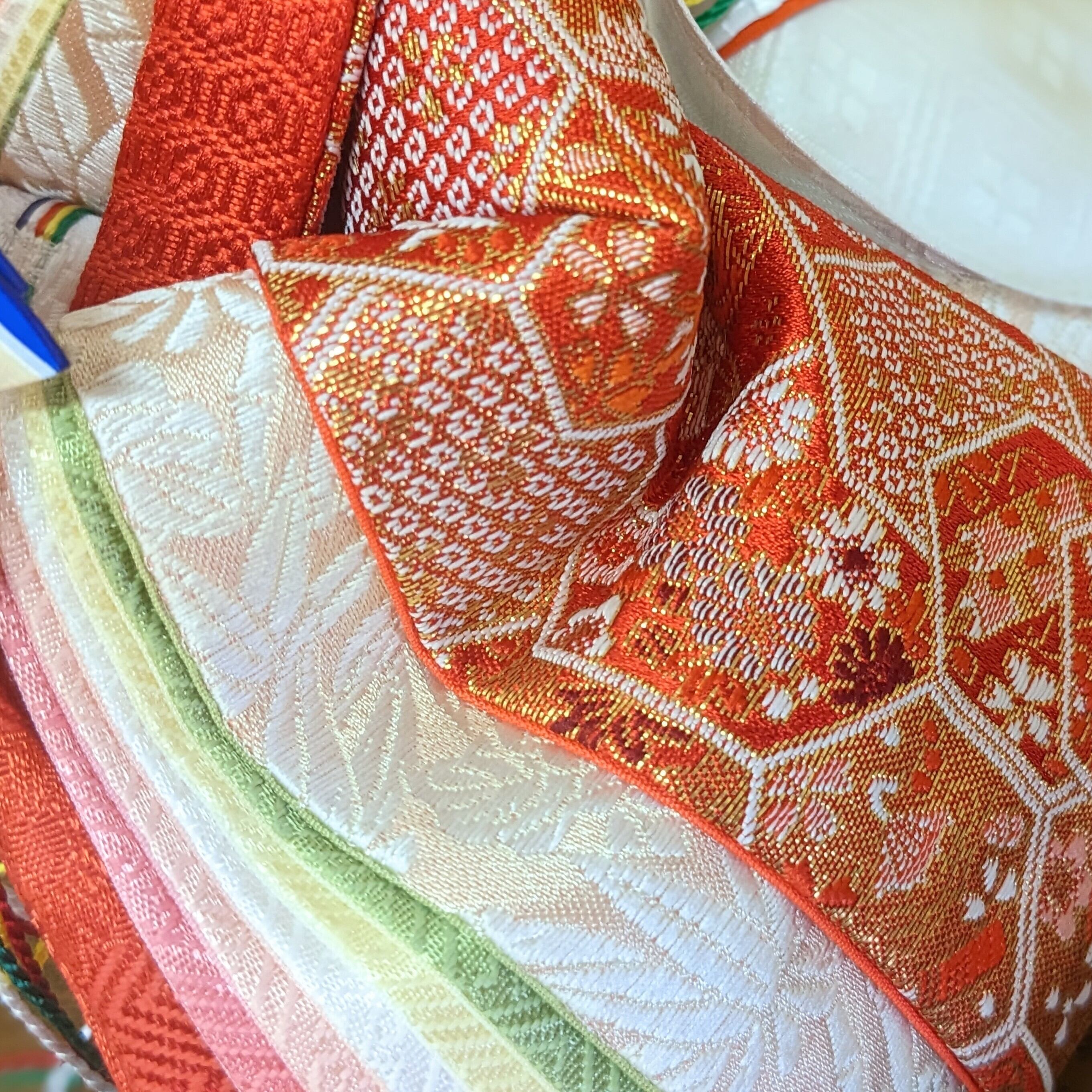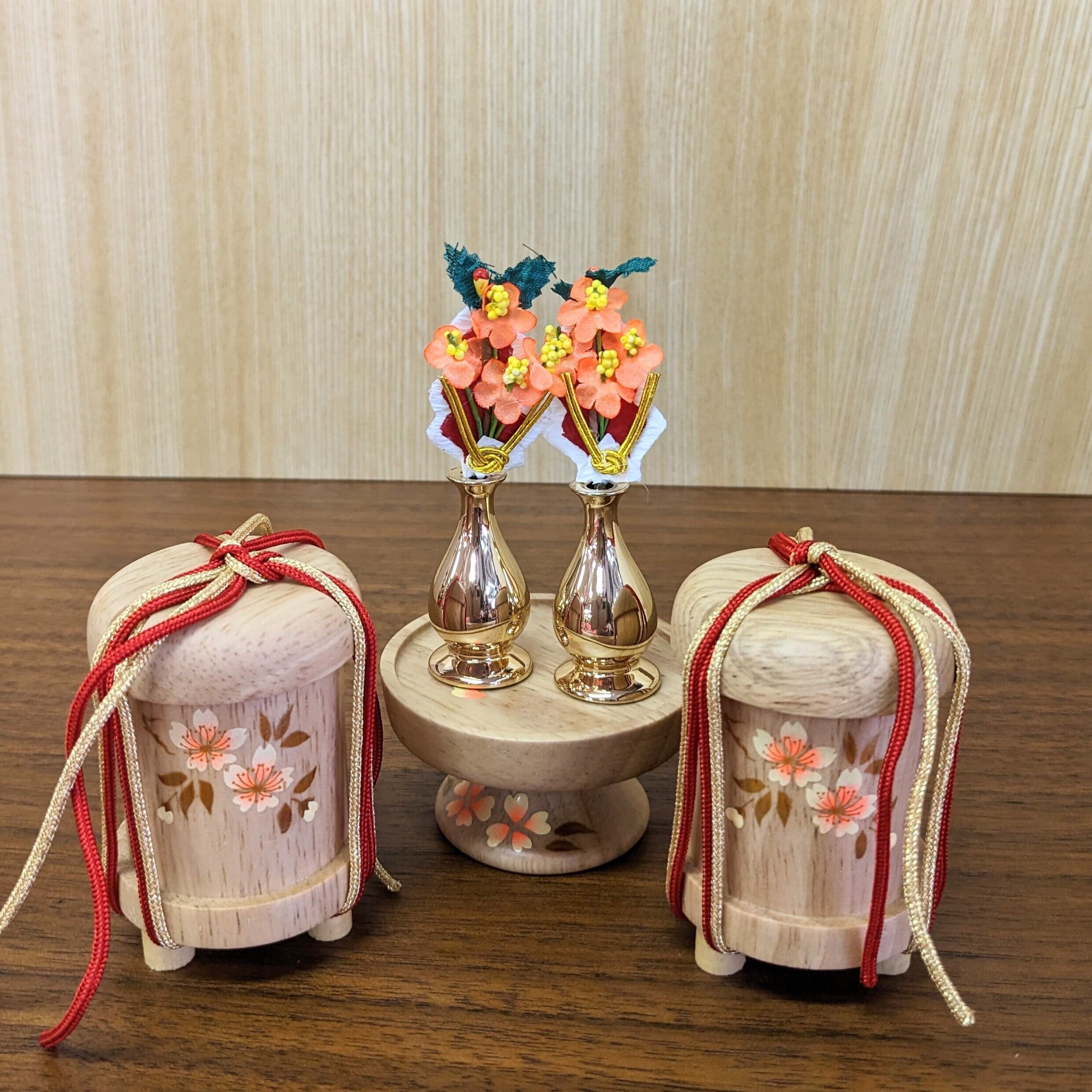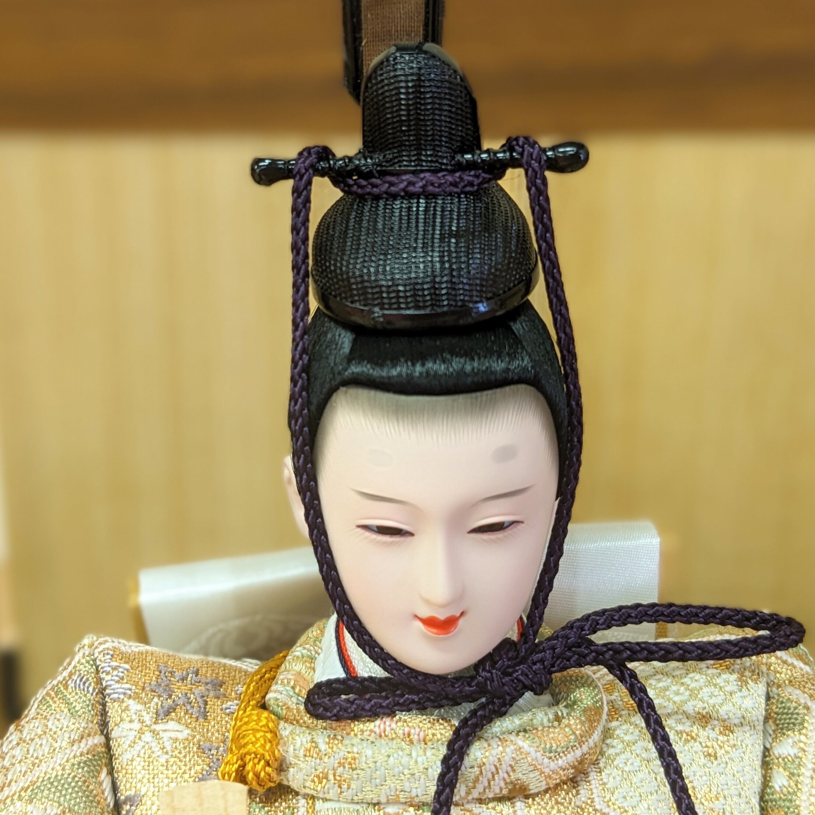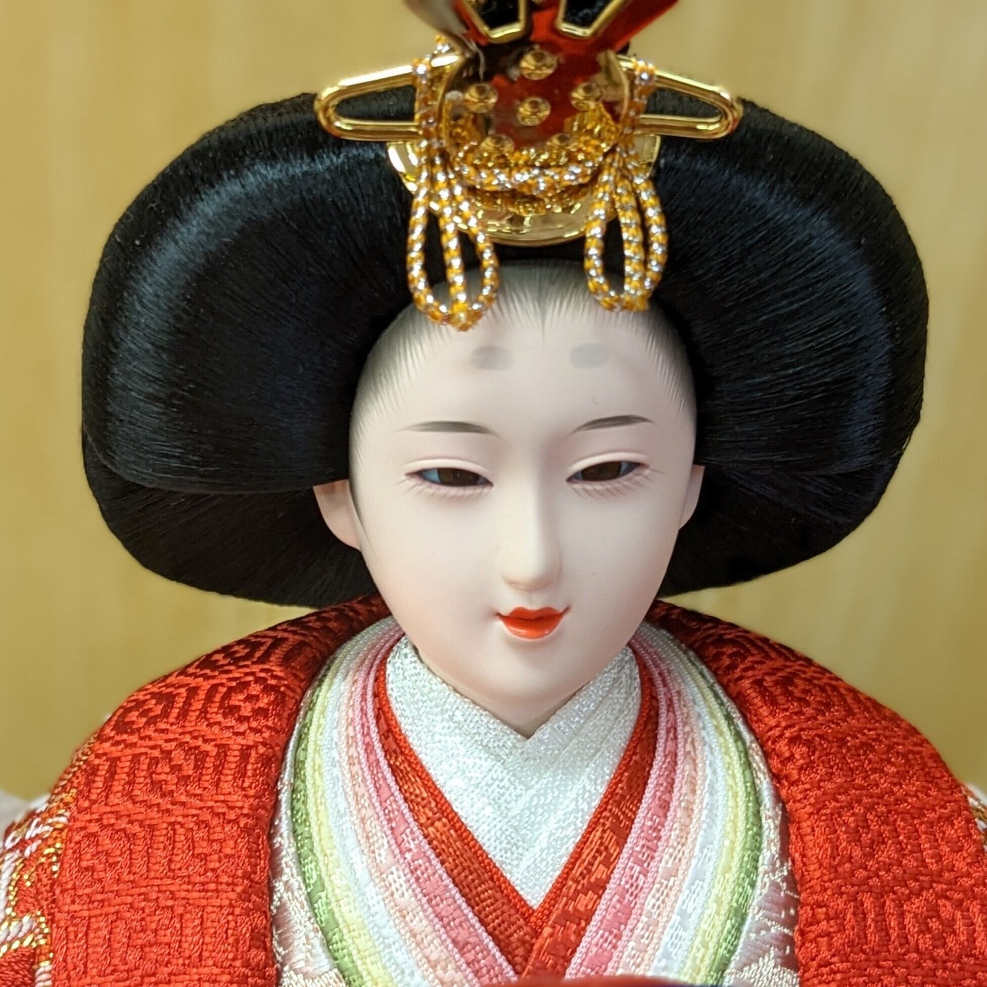 お人形の衣装は、金糸をふんだんに使った古典柄の金襴を使用し、華やかな印象です。