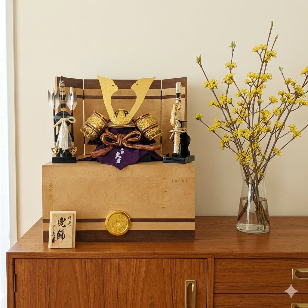 久月の収納箱入りの兜飾りです。