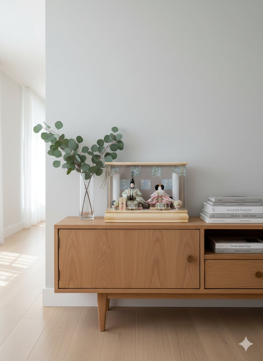 和室はもちろん、洋間にも違和感なく調和するお雛様です。