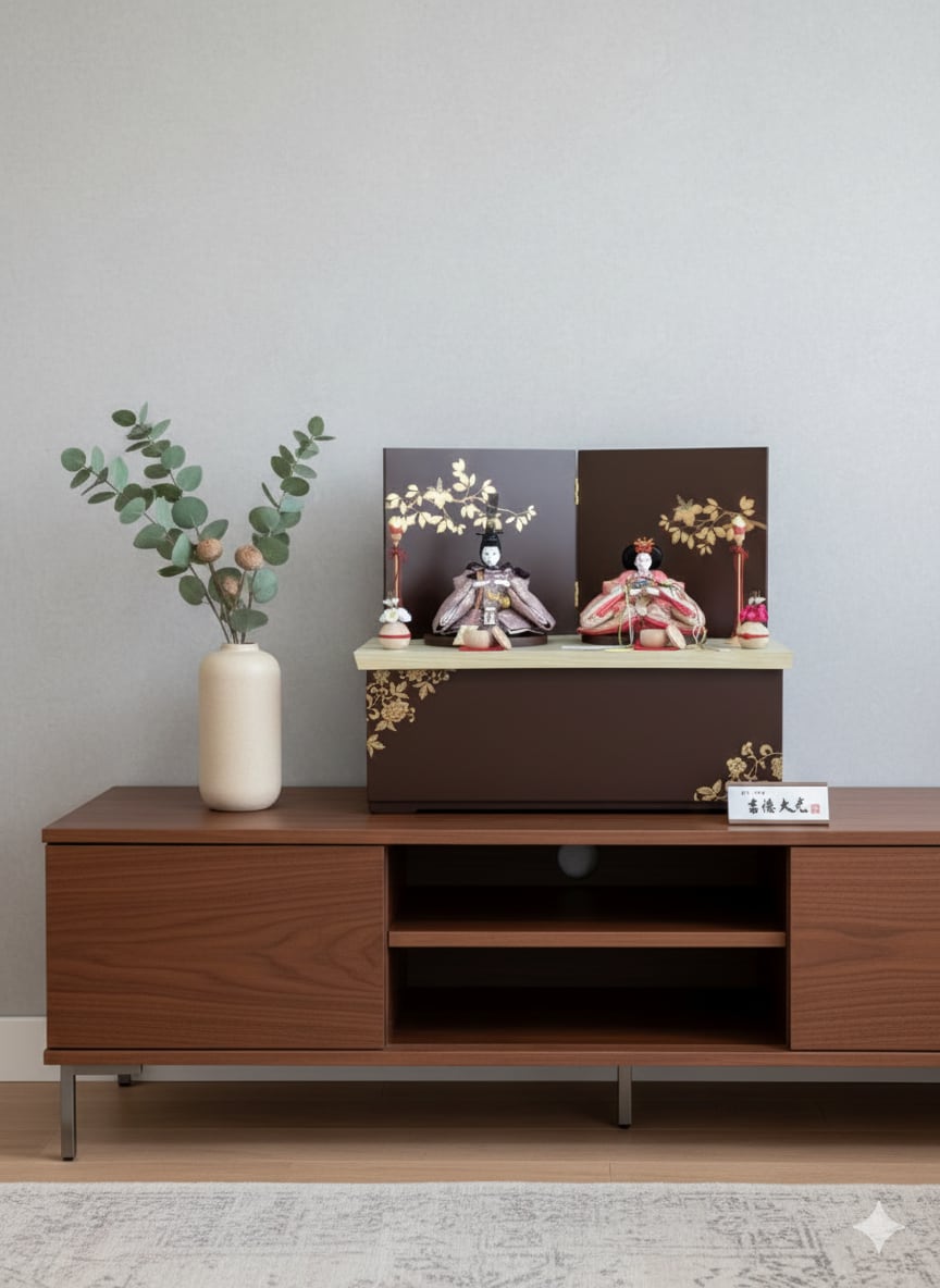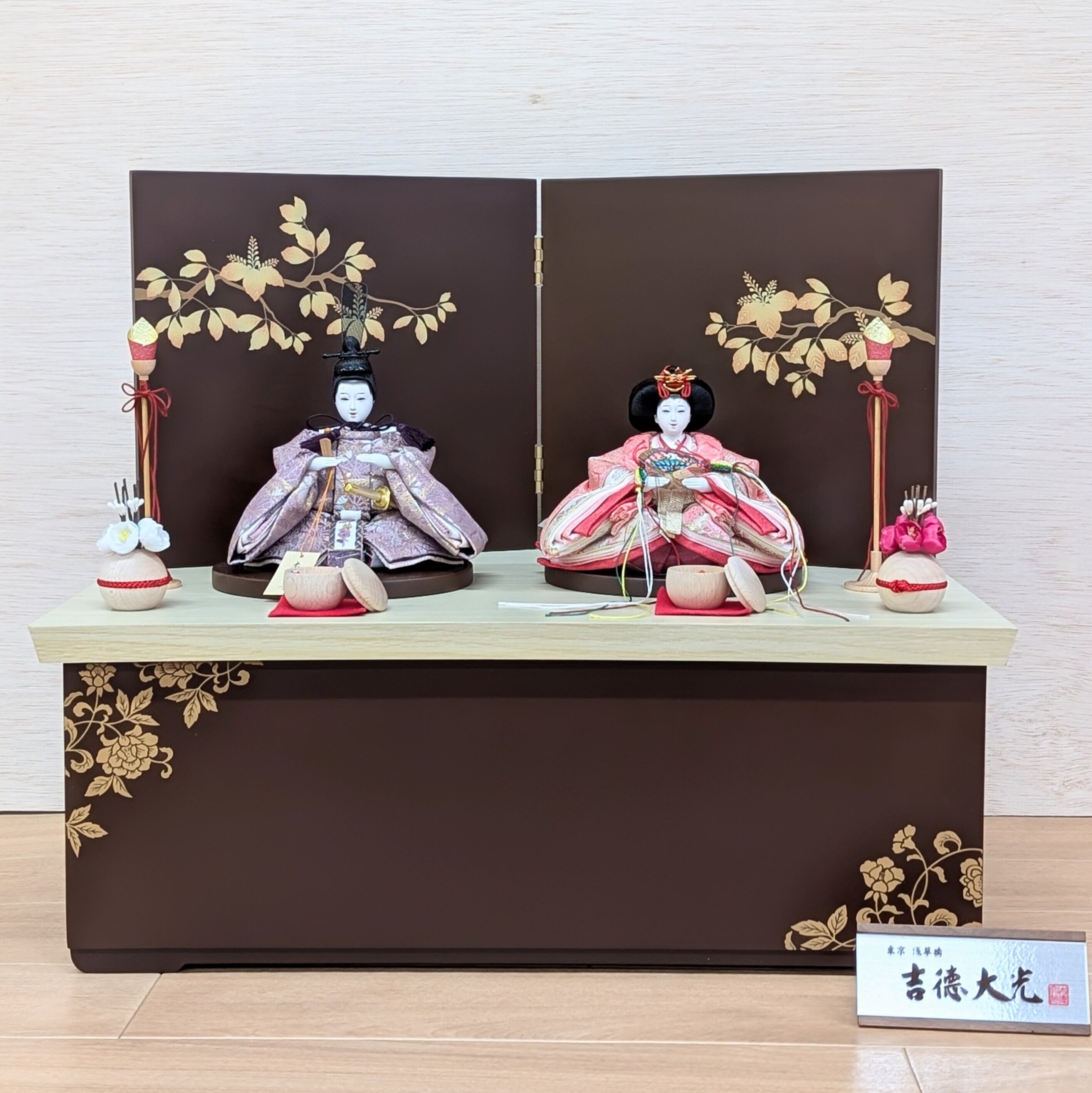 吉徳の収納箱入りのコンパクトな親王飾りです。